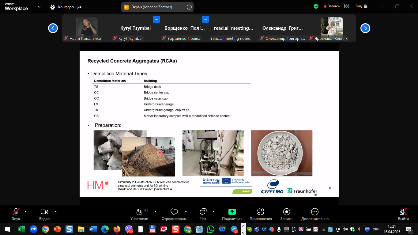 15 жовтня відбулася лекція від пані Andrea Kustermann за темою «Recycling and Circular Construction and Comparison of normal and 100% recycled aggregates concrete in microcrack sensitivity»