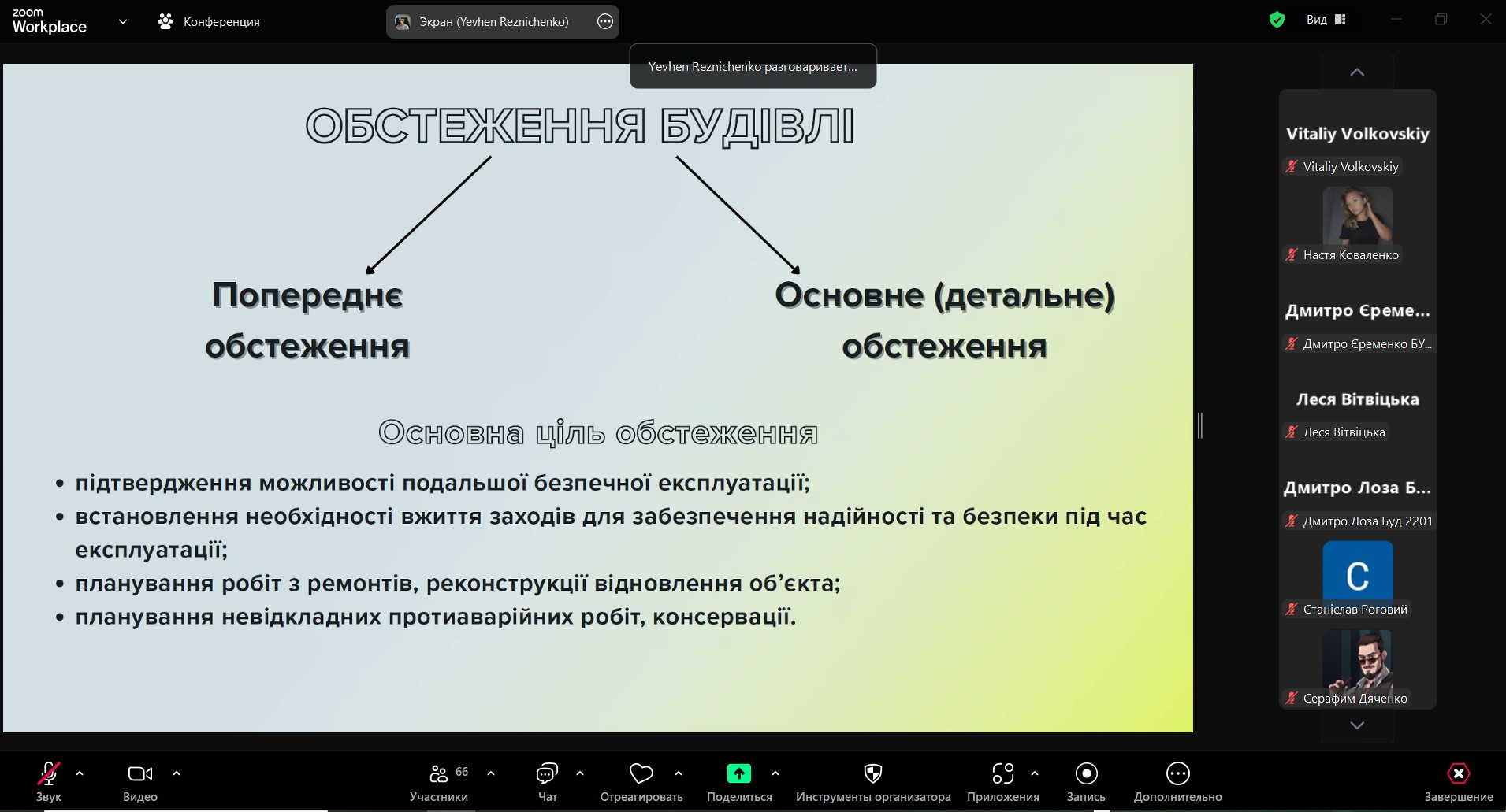 - Олександр Борзяниця здобувача 2ст кусу ОС Бакалавр (керівник Циганенко Л.А.) Питання обстеження пошкоджених будівель та споруд внаслідок військових дій