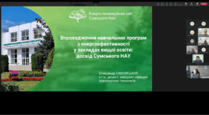 21 жовтня 2025 року Енергоінноваційний хаб Сумського національного аграрного університету долучився до вебінару GIZ «Оцінка сталості впровадження навчальних програм з енергоефективності у закладах вищої освіти», який відбувся у форматі онлайн.