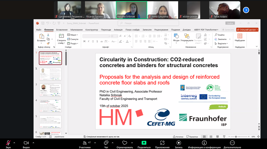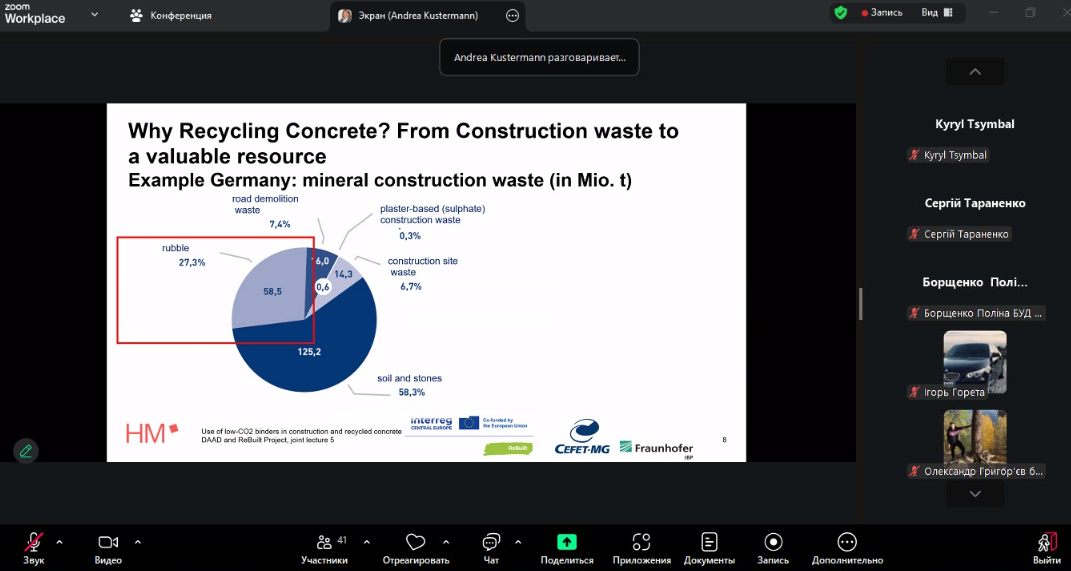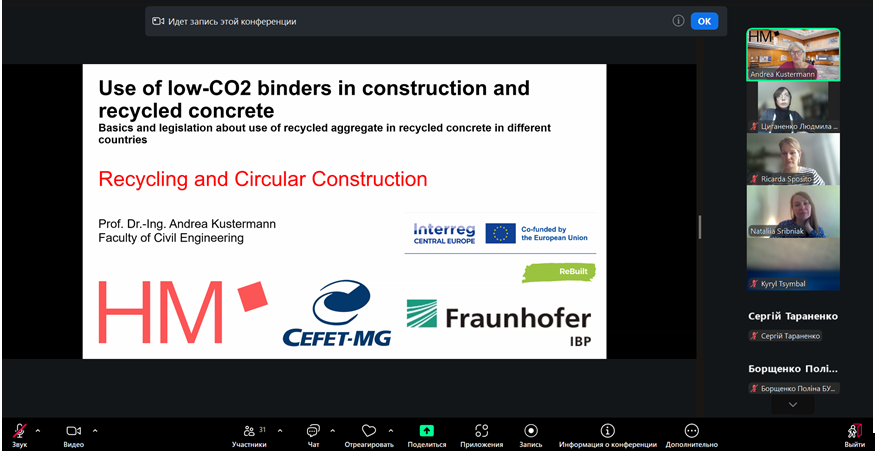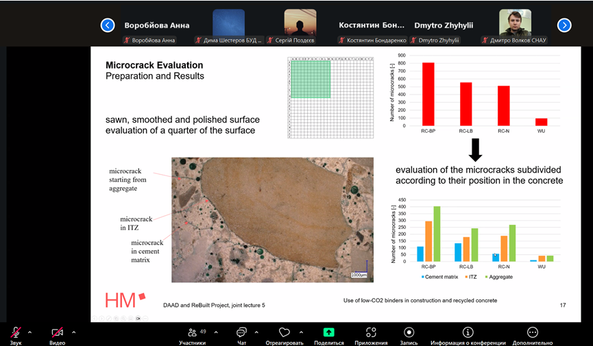 15 жовтня відбулася лекція від пані Andrea Kustermann за темою «Recycling and Circular Construction and Comparison of normal and 100% recycled aggregates concrete in microcrack sensitivity»