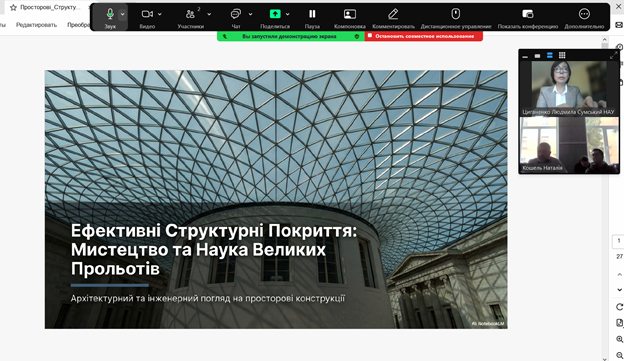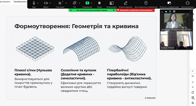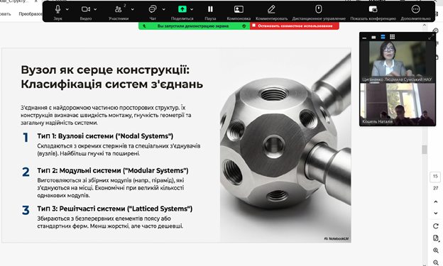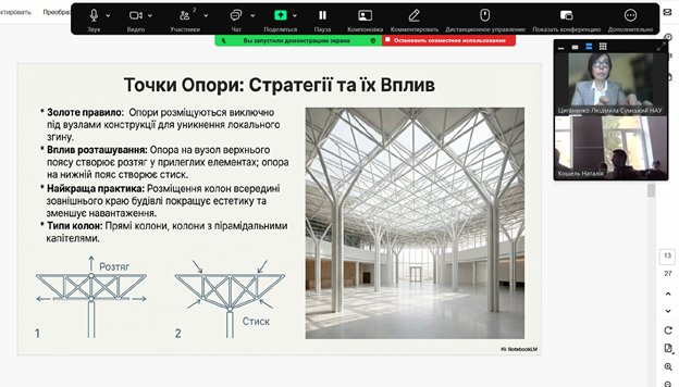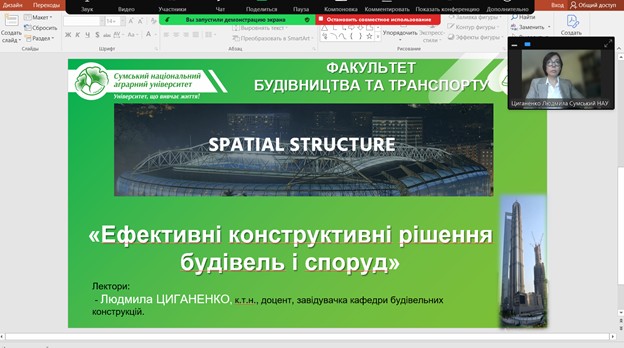 Лекцію проводила к.т.н, доцент Циганенко Людмила, завідувач кафедри будівельних конструкцій факультету будівництва та транспорту (ФБТ) СНАУ.