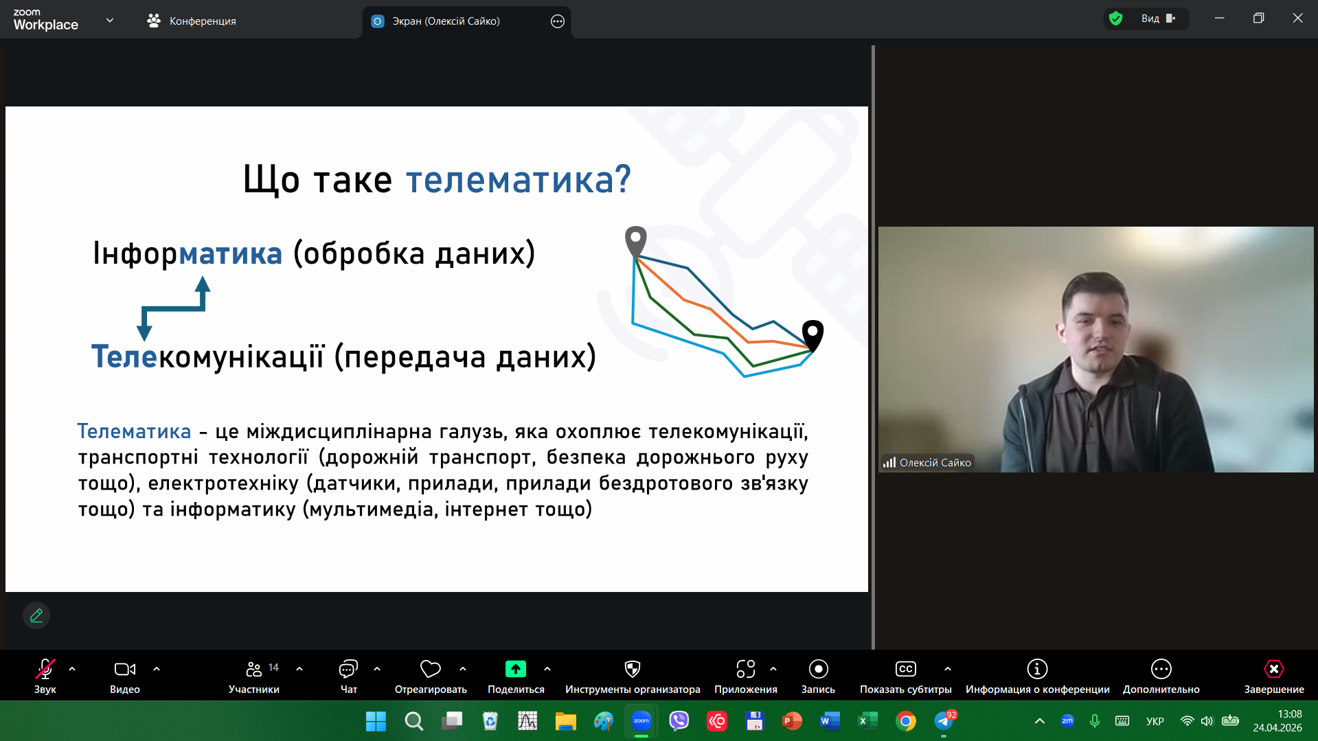Спікером заходу виступив Сайко Олексій Михайлович, менеджер з автоматизації транспортних процесів АТ «Укрнафта». У межах лекції було висвітлено сучасні підходи до організації супутникового моніторингу транспортних засобів, принципи функціонування систем GPS-контролю, особливості обладнання та практичні аспекти їх використання у діяльності підприємств.