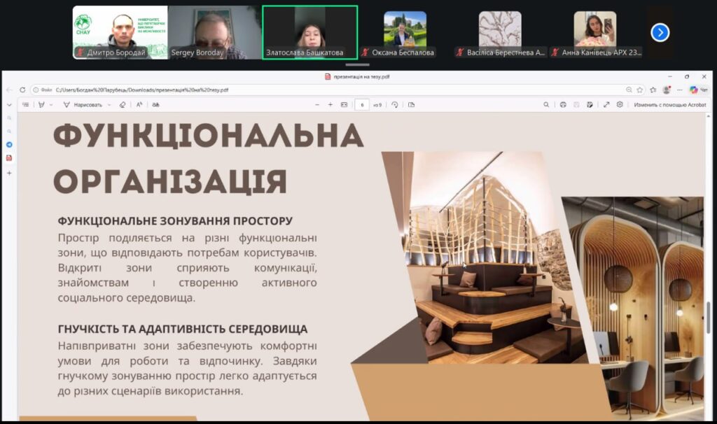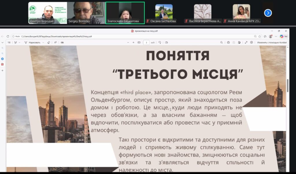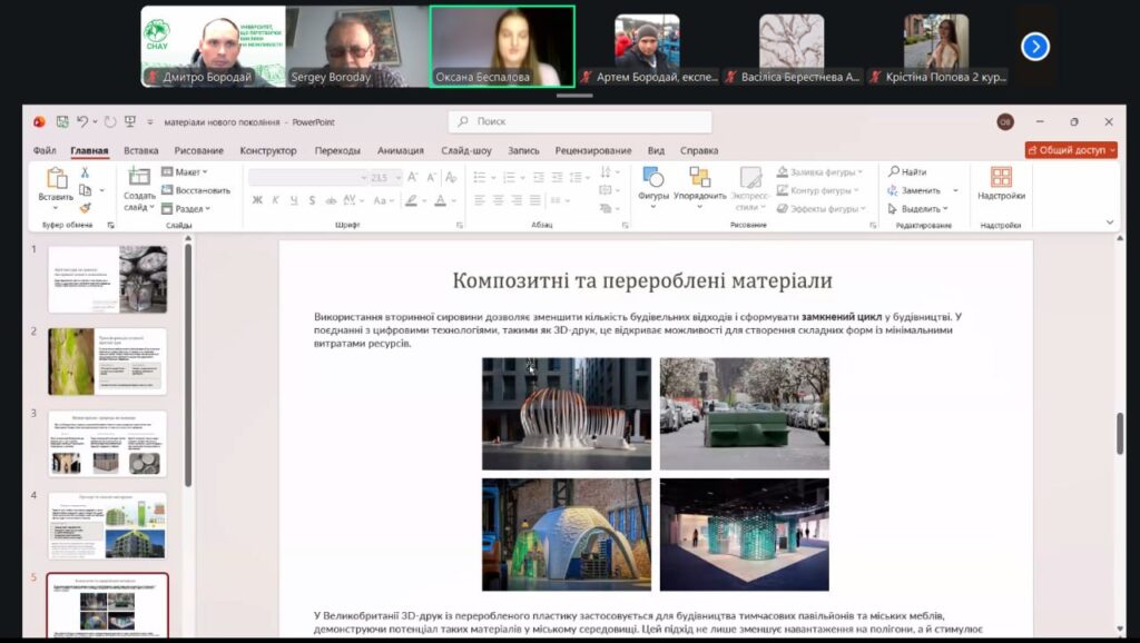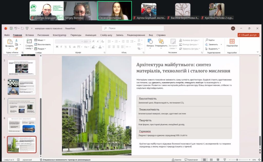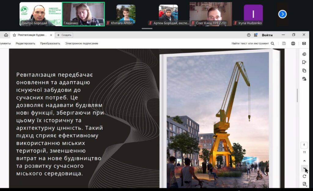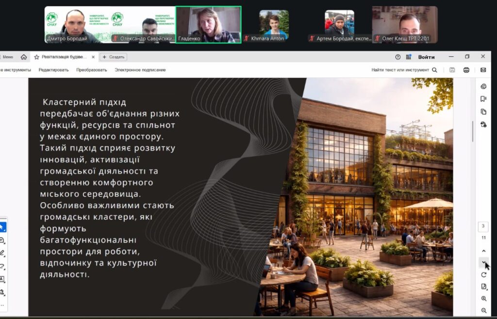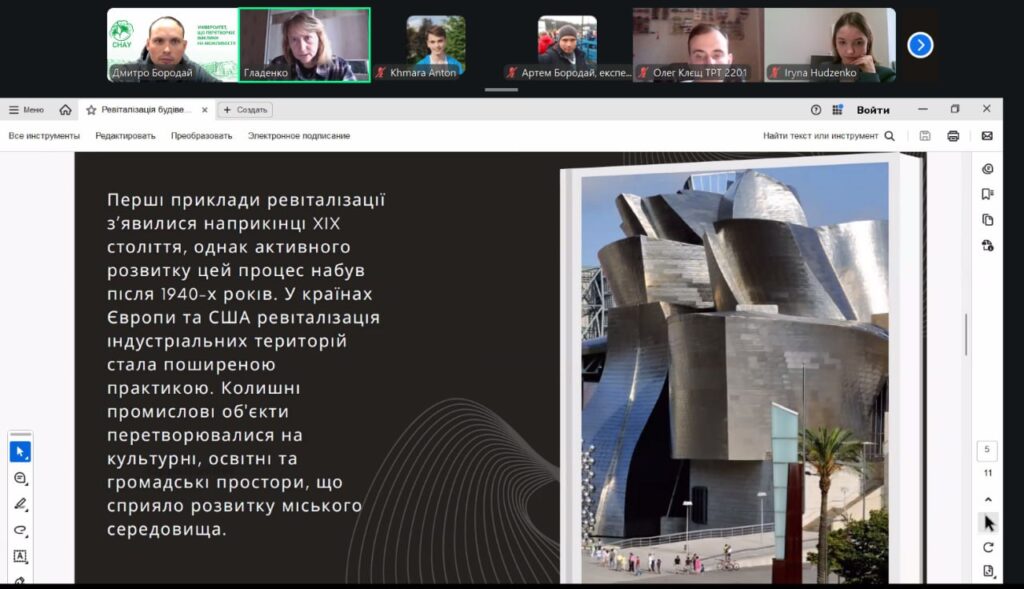 У рамках конференції учасники представили змістовні доповіді та презентації, присвячені питанням сталого розвитку, інклюзивності, охорони пам’яток архітектури, зеленої архітектури, ревіталізації, сучасних будівельних технологій і матеріалів, новітніх тенденцій в архітектурі та розвитку логістики. Порушені теми викликали жвавий інтерес і стали підґрунтям для активних дискусій та обміну думками.
