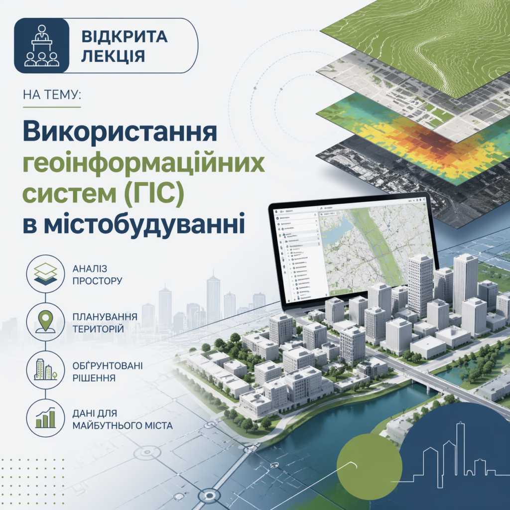 ОГОЛОШЕННЯ! ЗАПРОШУЄМО НА ГОСТЬОВУ ЛЕКЦІЮ ВІД В.КОРКІНА НА ТЕМУ “ВИКОРИСТАННЯ ГЕОІНФОРМАЦІЙНИХ СИСТЕМ (ГІС) В МІСТОБУДУВАННІ”