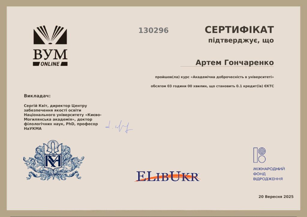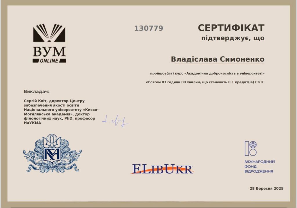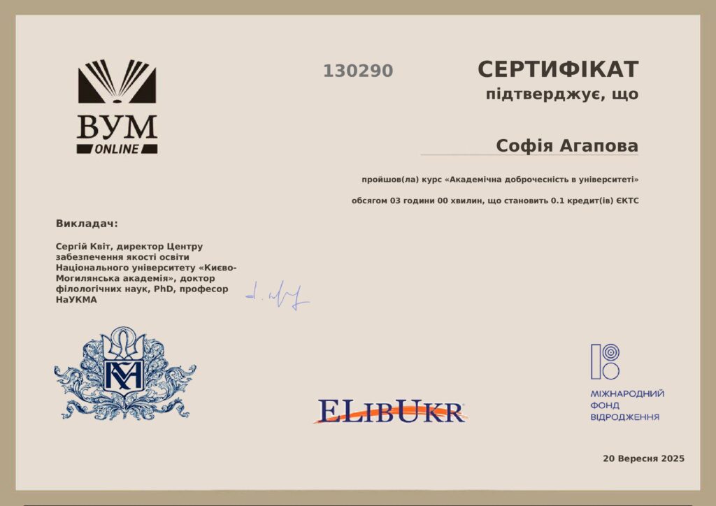 В рамках курсу “Українська мова та академічне письмо” (1 курс)