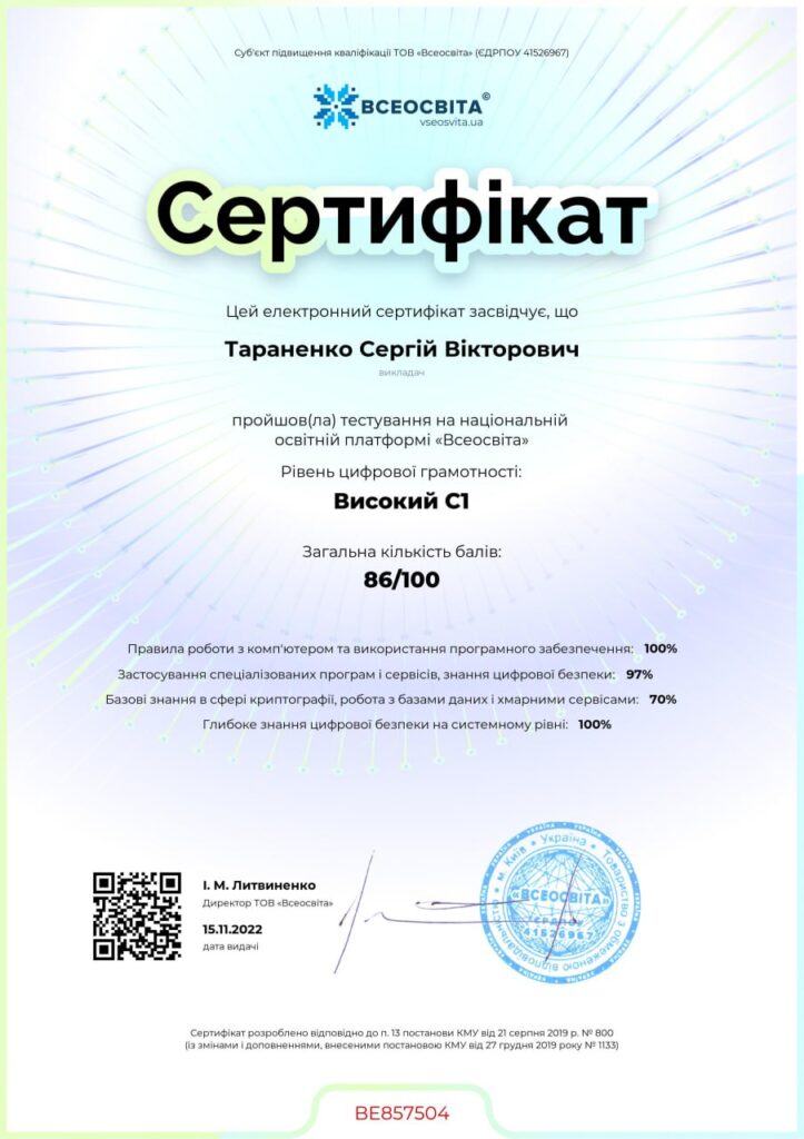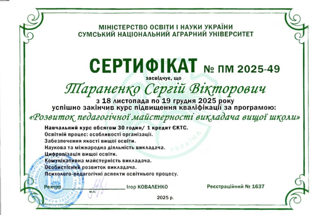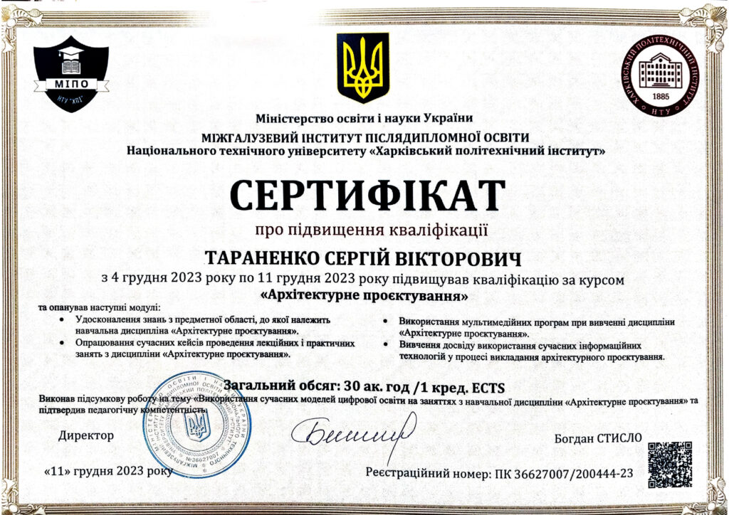 Тараненко С.В. – старший викладач (ОК 20 – Основи архітектурної та комп’ютерної графіки)