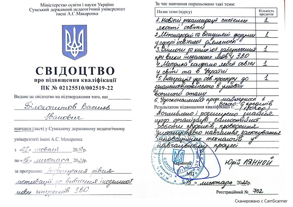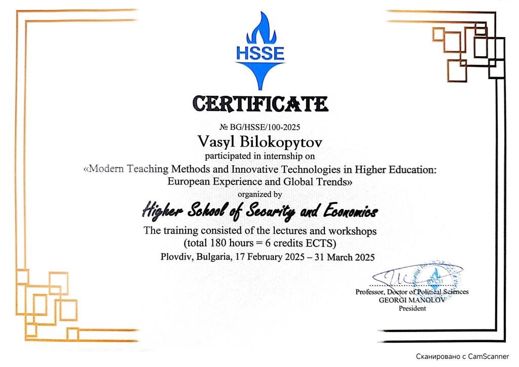 Білокопитов В.І. – канд. пед. наук, доцент (ОК 3 – Іноземна мова)