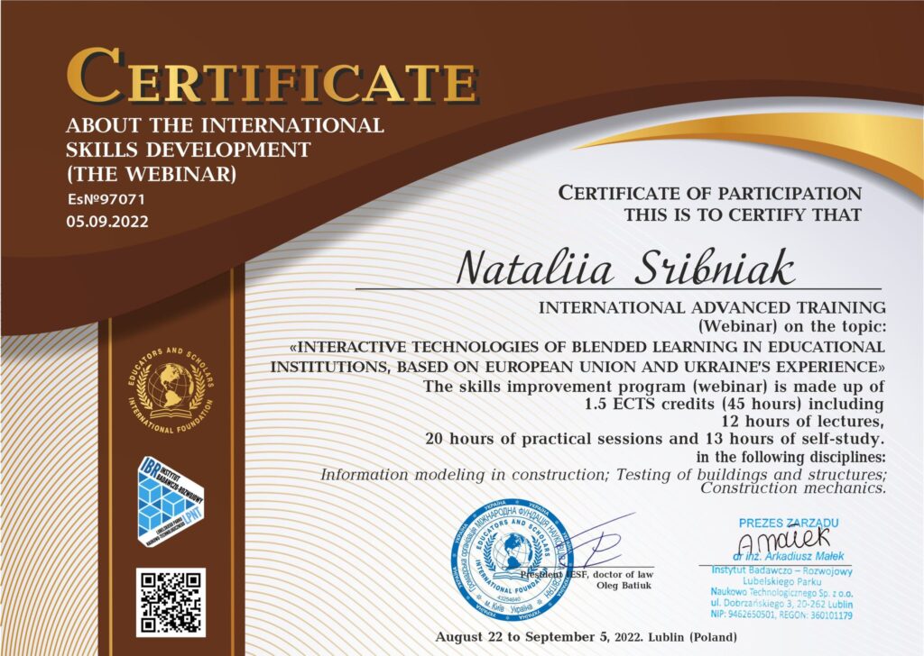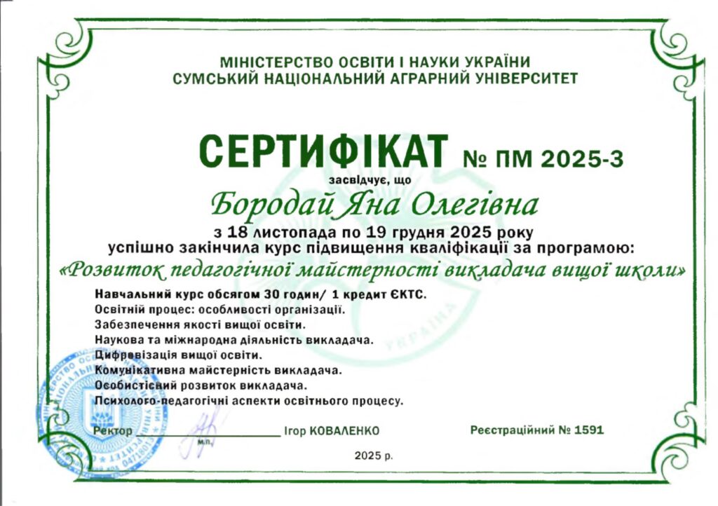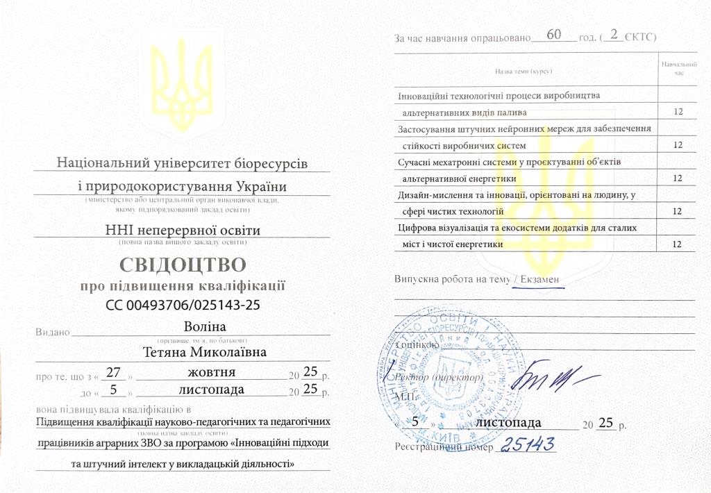 Сертифікати та інші документи, що засвідчують підвищення кваліфікації НПП групи забезпечення ОПП