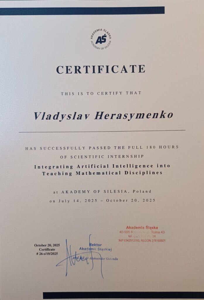 Герасименко В.О. – к.ф.-м.н., доцент (ОК 6 – Вища математика)