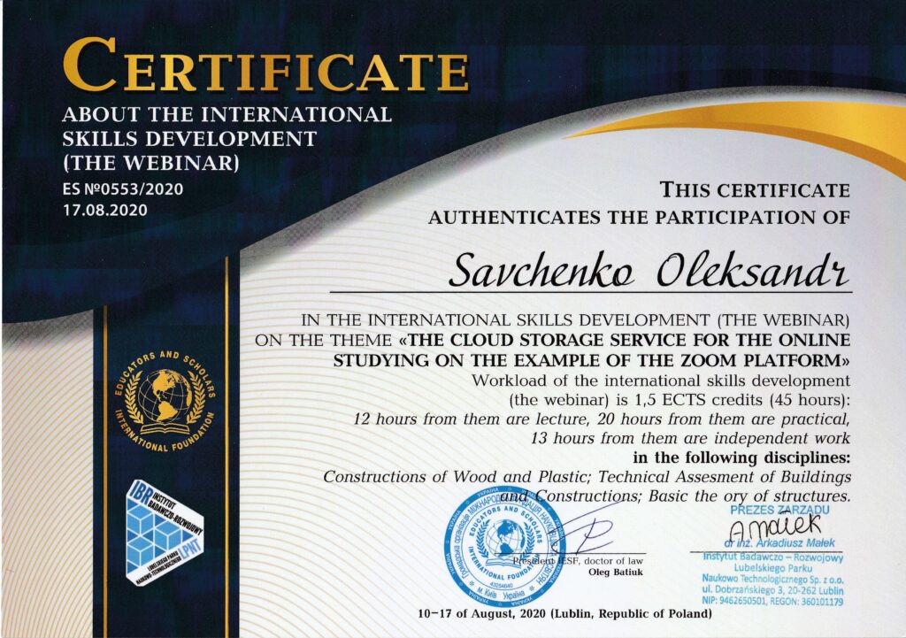 Савченко О.С. – к.т.н., доцент (ОК 8 – Основи теорії споруд)