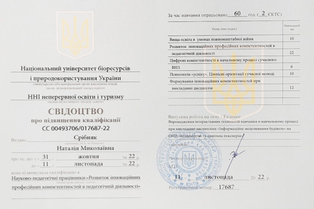Срібняк Н.М. – к.т.н., доцент (ОК 17 – Конструкції будівель та споруд)