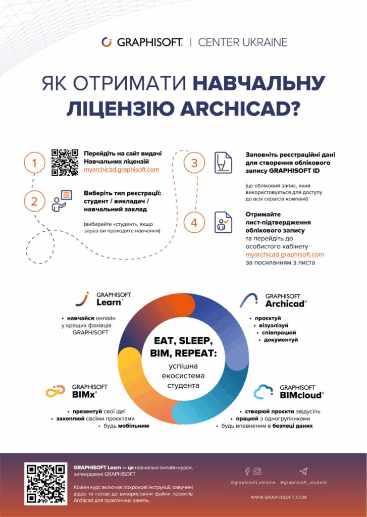 Кожному студенту викладач під час навчання надає можливість встановити на персональний комп’ютер (ноутбук) навчальну ліцензійну версію Graphisoft ArchiCAD.