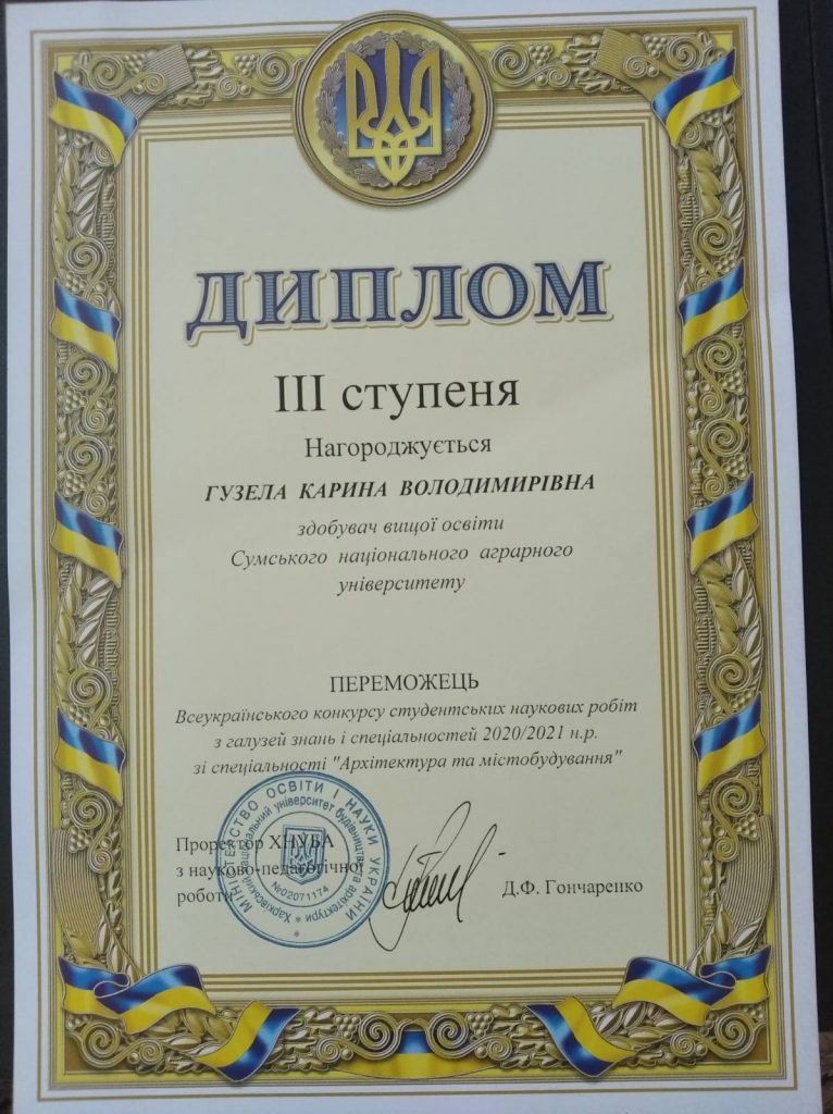 Всеукраїнський конкурс студентських наукових робіт з галузей знань та спеціальностей 2020/2021 н.р. зі спеціальності “Архітектура та містобудування”