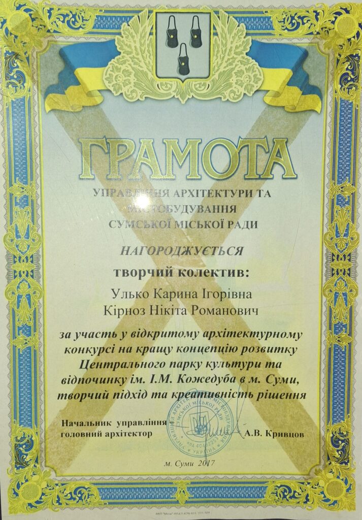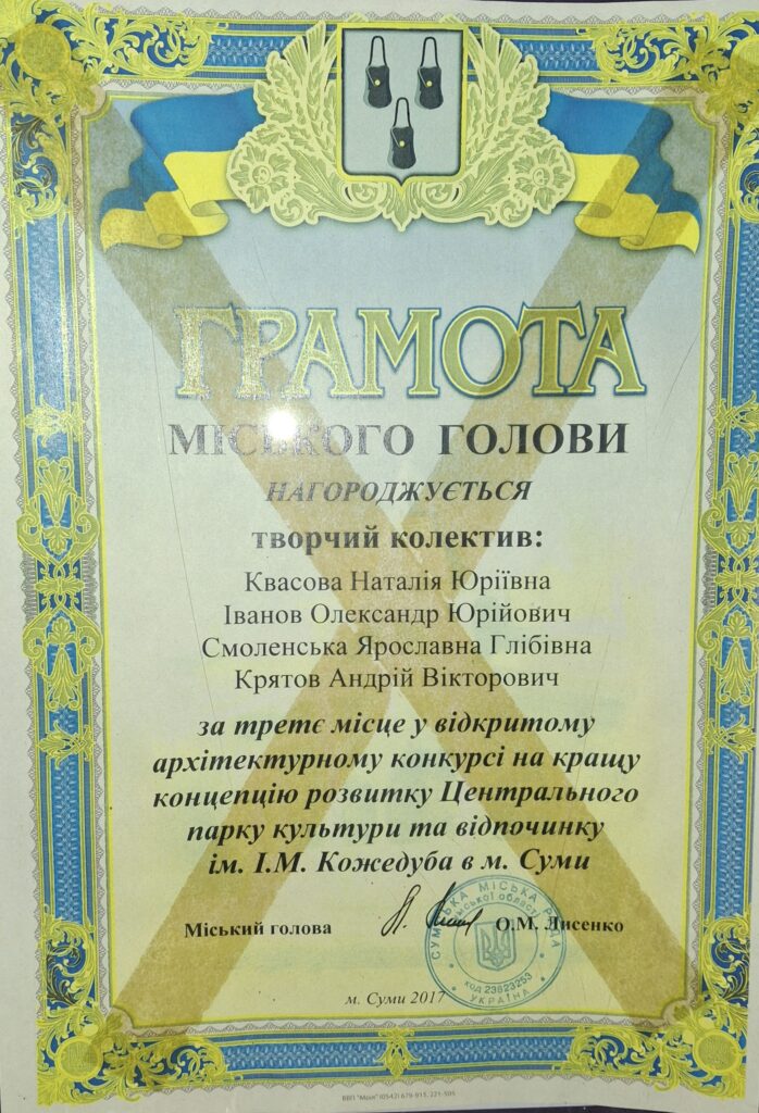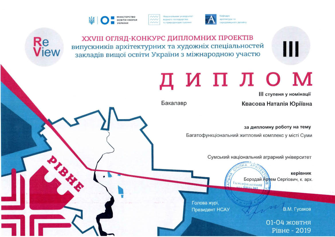 Перемога студентки Квасової Н.Ю. у Всеукраїнському конкурсі “Архітектор-2018”