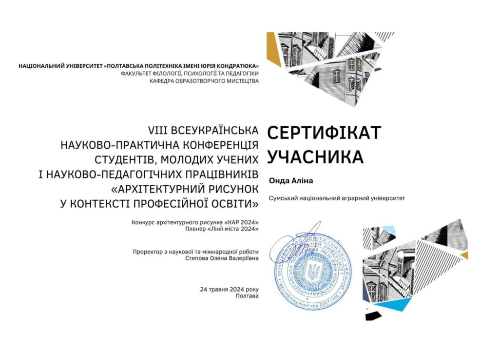 Всеукраїнський конкурс архітектурного рисунку КАР 2024 у м. Полтава на базі НУ “Полтавська політехніка імені Ю. Кондратюка”
