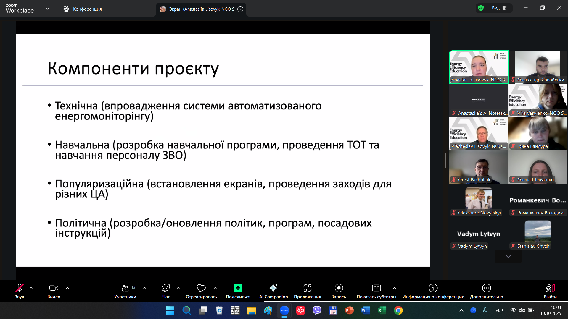 Під час першої робочої зустрічі учасники обговорили основні завдання проєкту, етапи впровадження та механізми координації між Енерго-Інноваційними Хабами й університетами-учасниками.